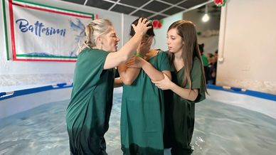 Le persone che decidono di dare la loro vita a Cristo vengono immerse nelle acque dei battesimi.